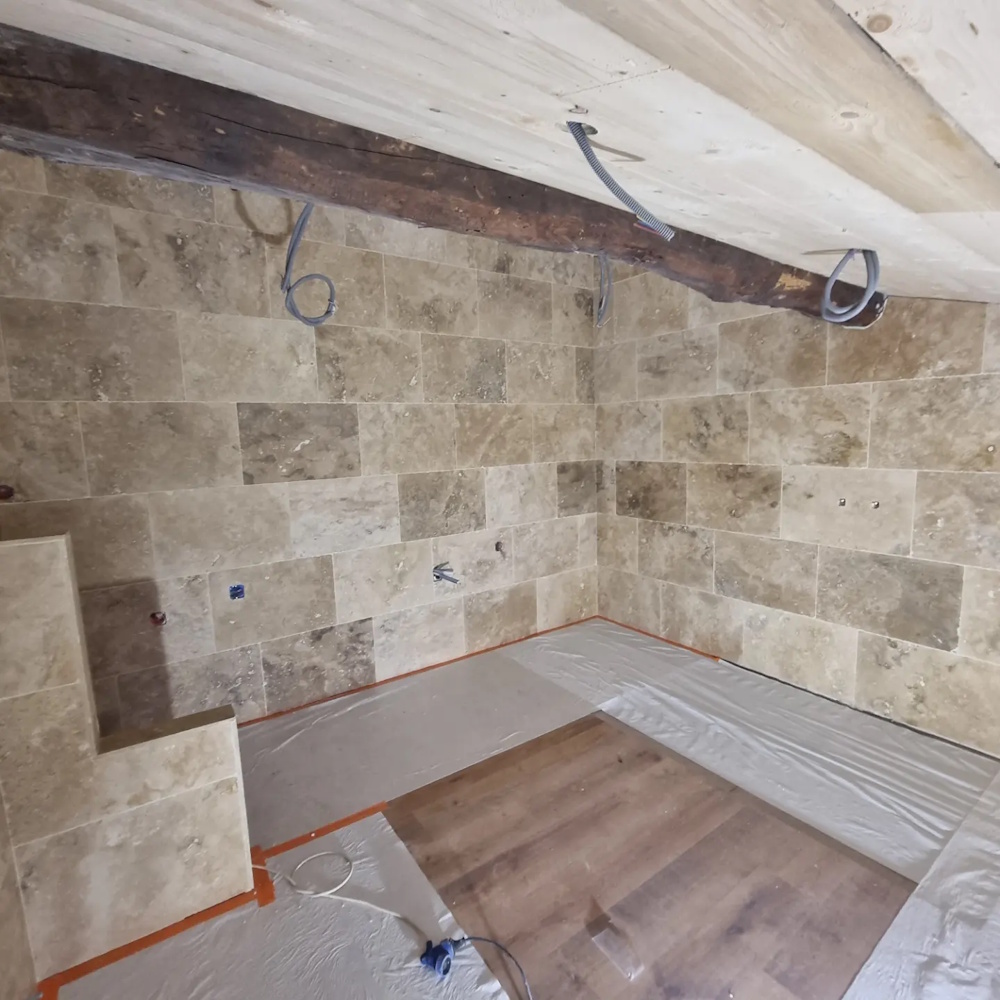 De la préparation du fond de mur jusqu’aux finitions de joints, Laurent Bastide Carrelage assure une pose millimétrée respectant le calepinage naturel des pierres.